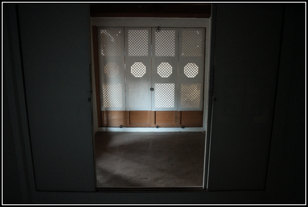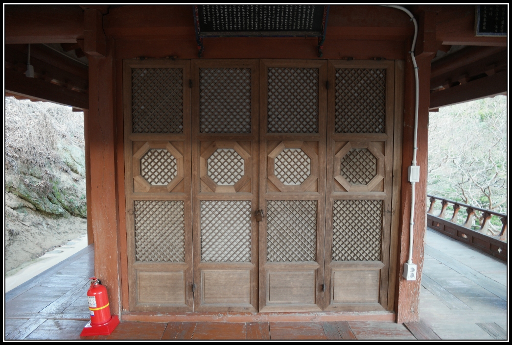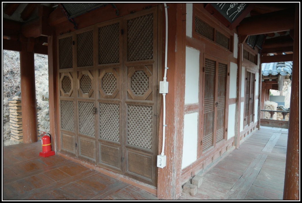 너른 마루쪽으로는 문짝 네개가 죽 잇달아 달린 넌출문인 사분합문(四分閤門)을 두어,