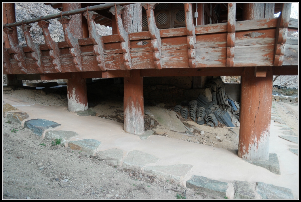 제각기 다른 기둥으로 비스듬이 자리한 위치에 맞추어 세웠으며,