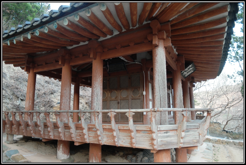 정면 3칸, 측면 2칸이며 난간은 계자난간에 지붕은 팔작지붕의 형태를 갖추고 있으며,