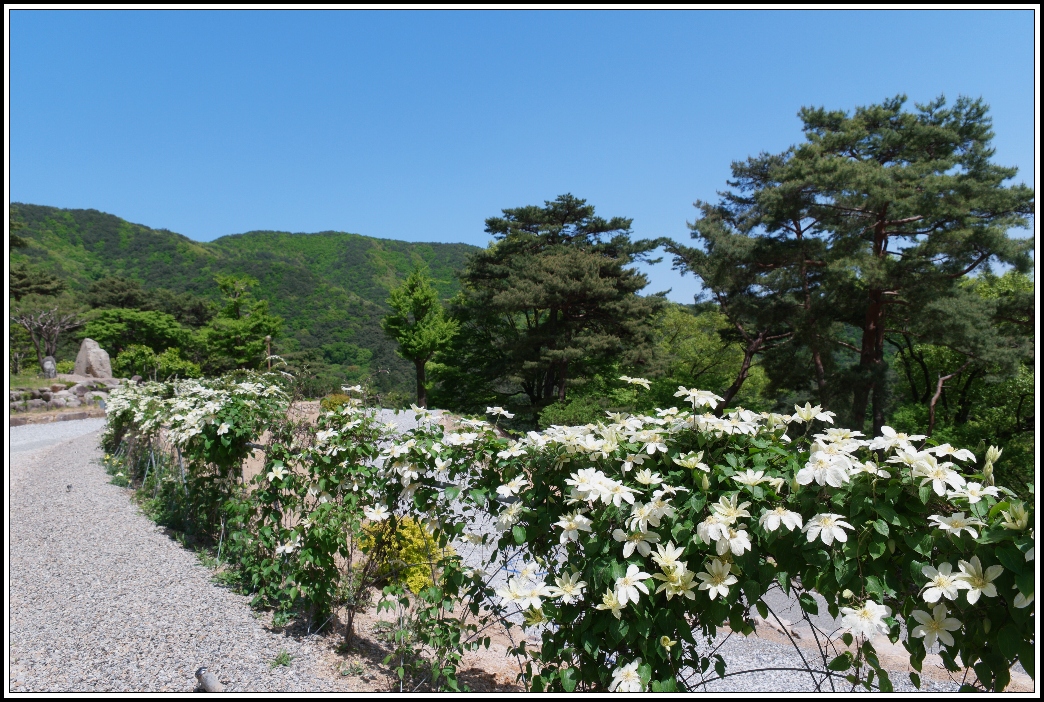 안쪽의 화단에는 꽃이 활짝 피어올라 있는데,