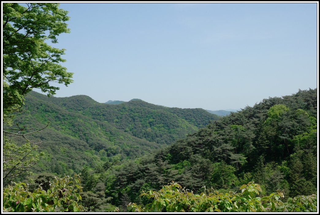 운달계곡이 있는 산의 능선이 아래로 펼쳐 집니다.