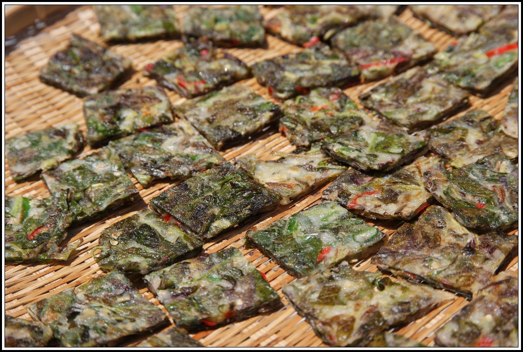 들여다 보니 야채전 남은것을 말리고 있는 모습으로,