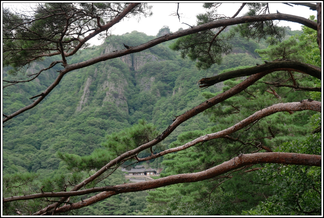 소나무의 가지사이로 연화봉 아래로 청량사의 모습이 살짝 들어오고,