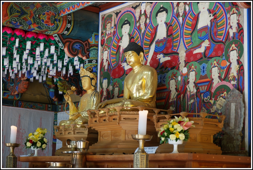 왼쪽의 협시불자리에 비어 있는곳은 문수보살로,