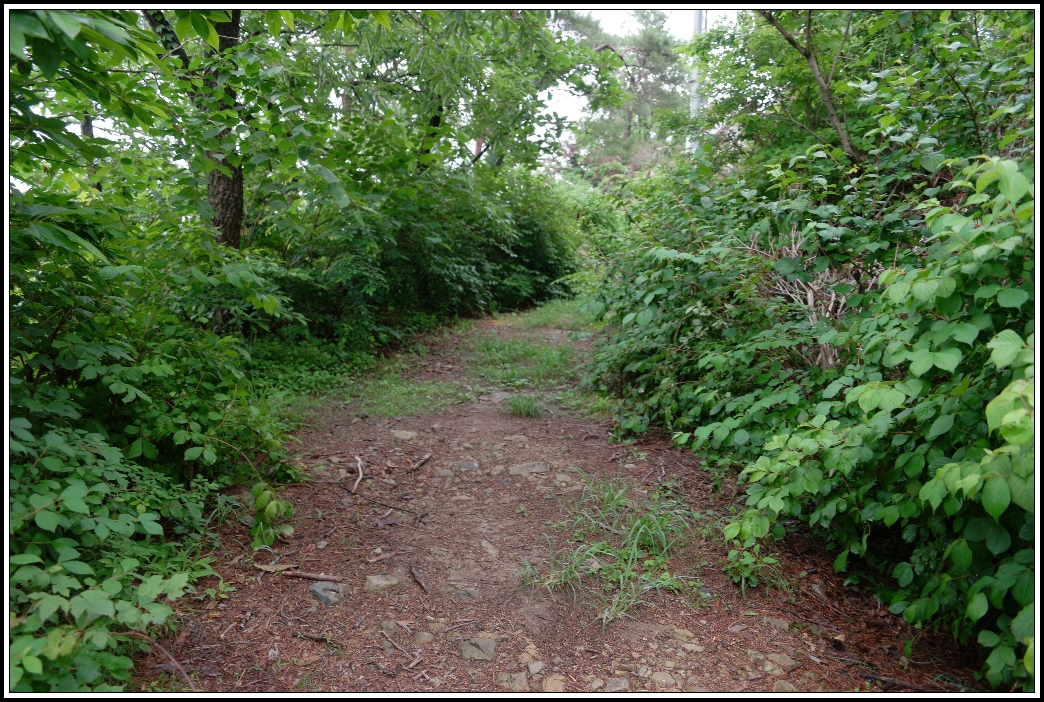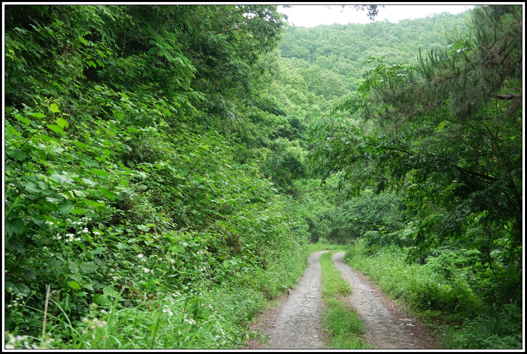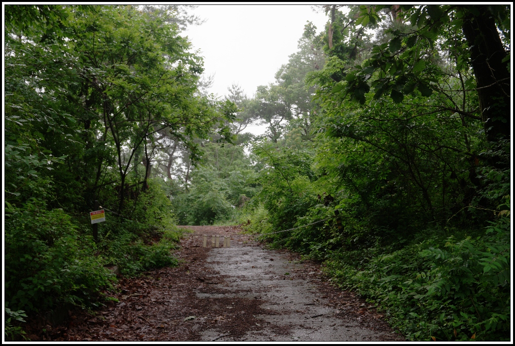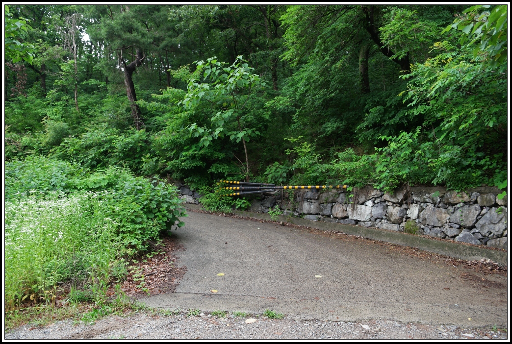 임도를 딸다 보면 갈림길이 나오며 약간 좁은길쪽에는 바리게이트가 있어,