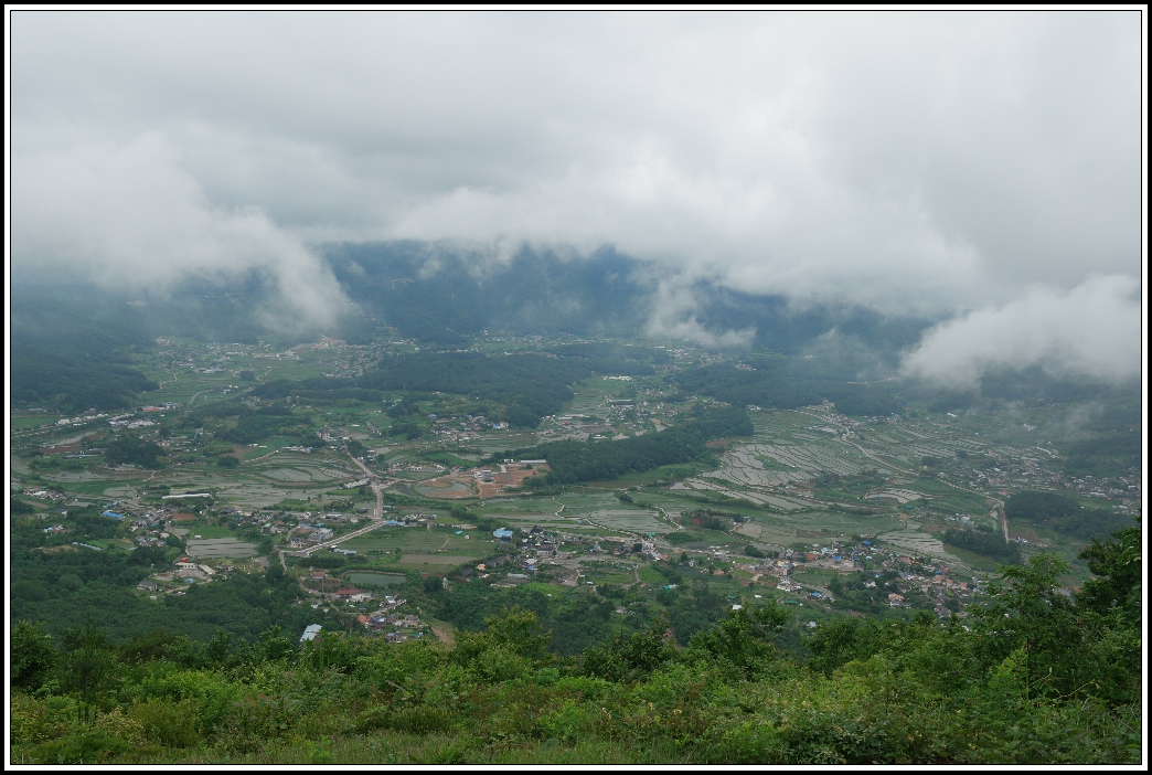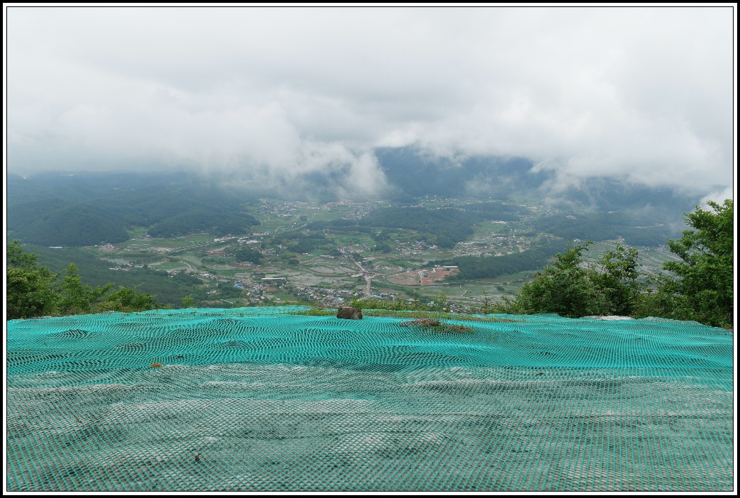 정면으로는 구름에 가린 묵장산 아래에 있는 두둥면의 광활한 전경이 펼쳐지는데,