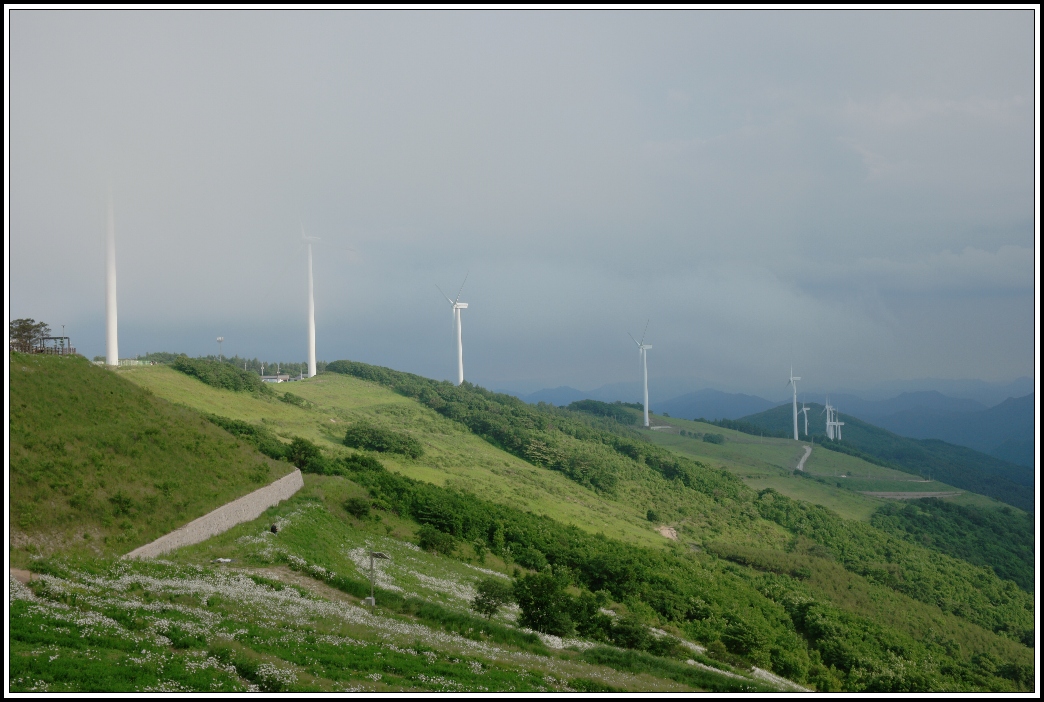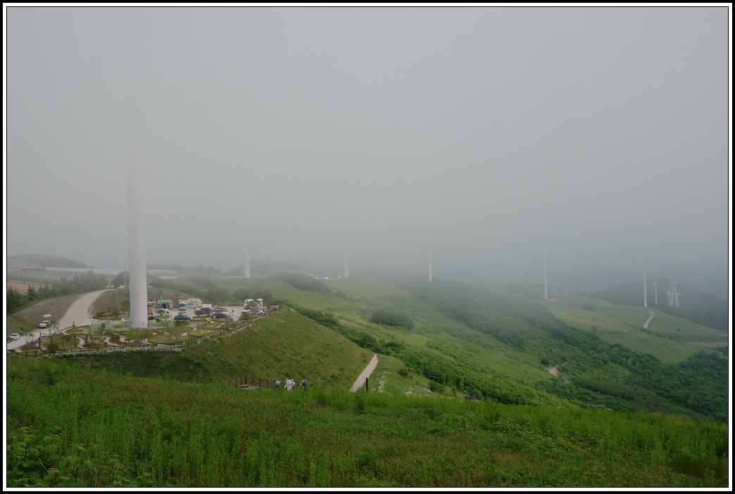 낮은 구름이 육백마지기가 있는 청옥산을 뒤덮고 있어,