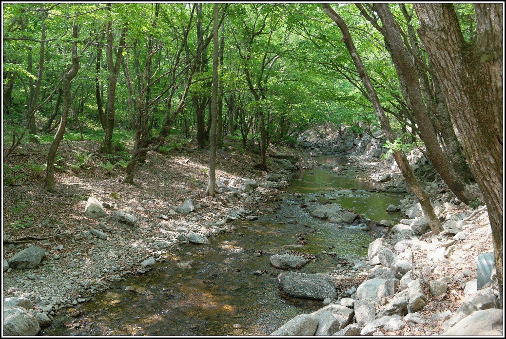 맑은 물이 흐르는 계곡을 따라 길이 계속 이어져 있어,