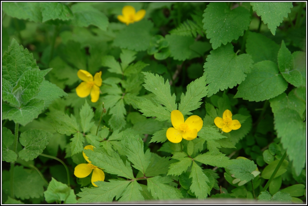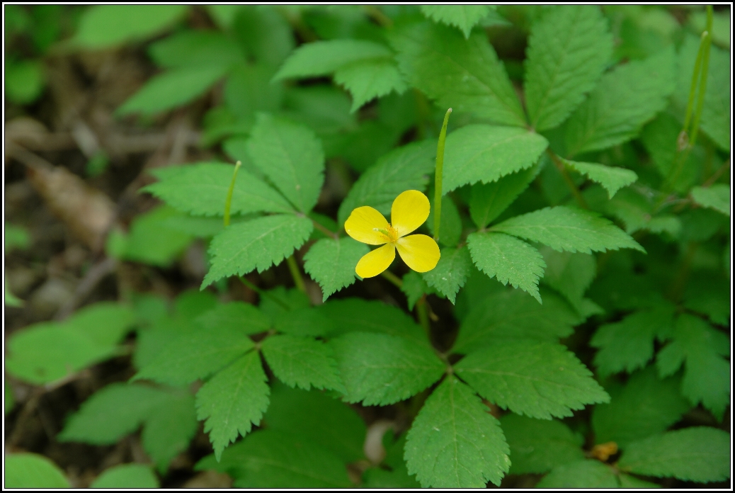 노란 병아리가 입을 벌리고 있는듯한 모습의 "피나물 꽃"으로,