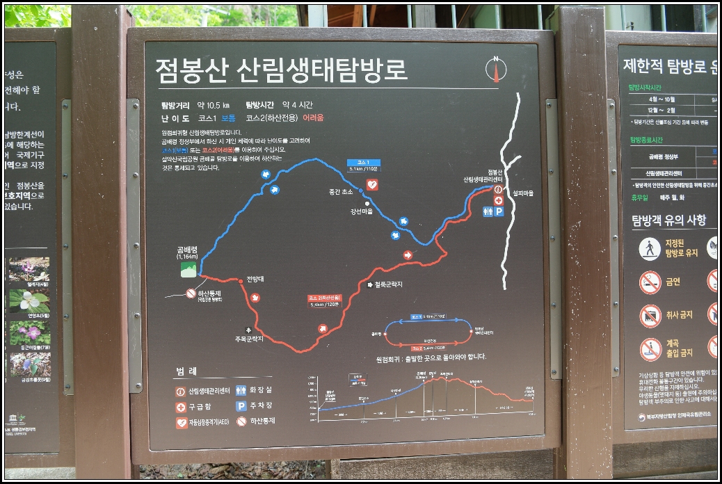 입구에서 점봉산 생태관리소를 만나게 되며,