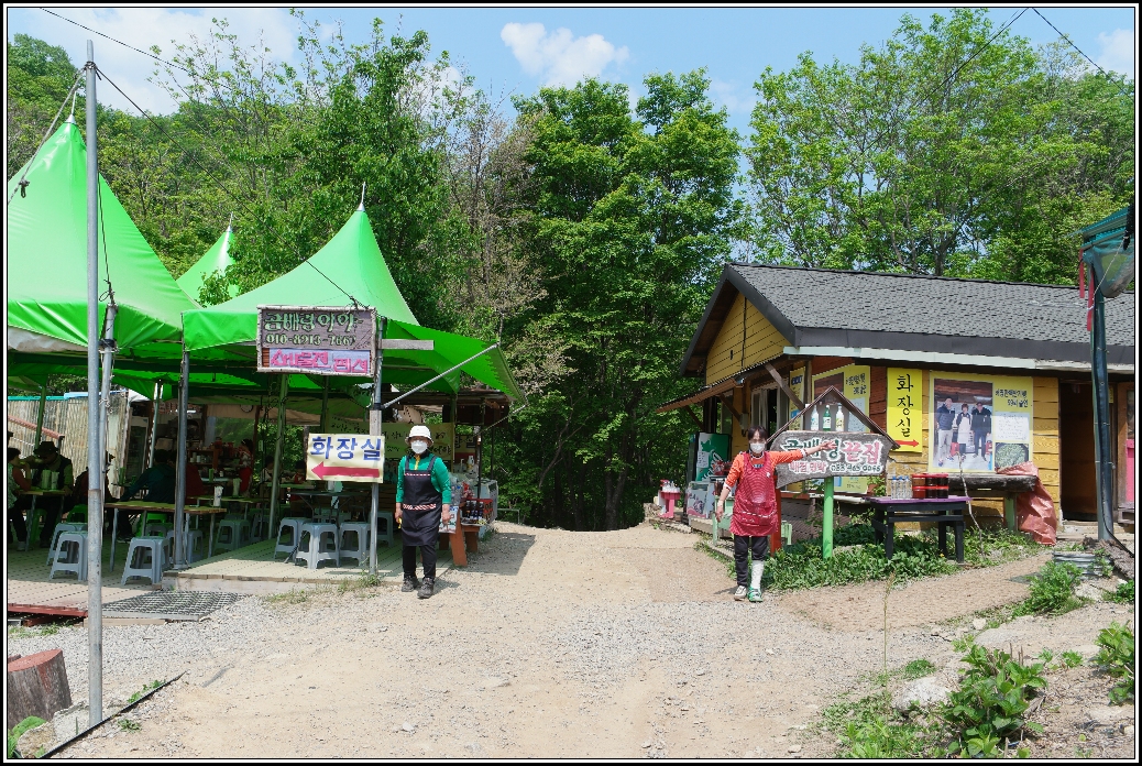 곰배령 주차장에서 약 2km에 위치해 있는 "강선마을" 식당가를 만나게 되는데,