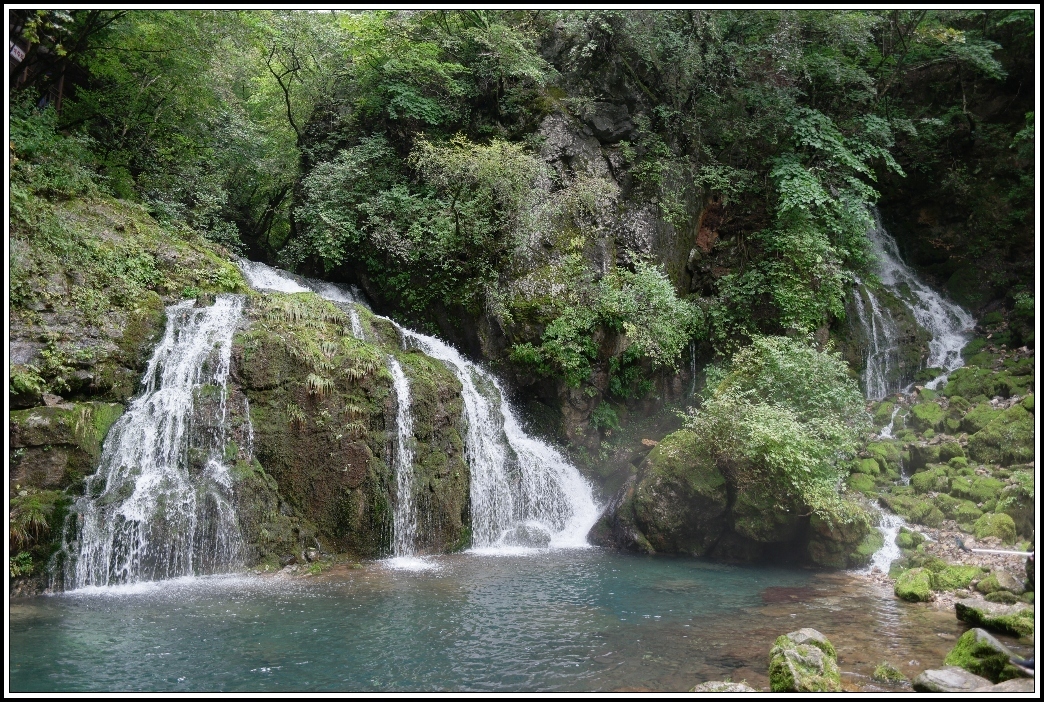 푸른 계곡물이 신비로움을 더하는데,