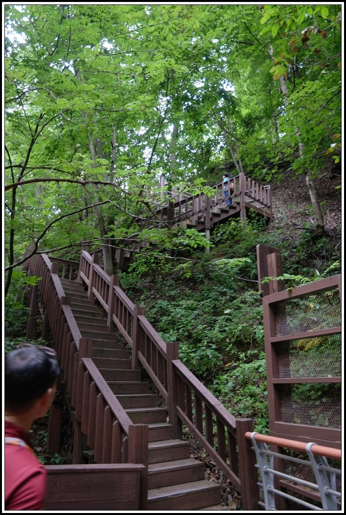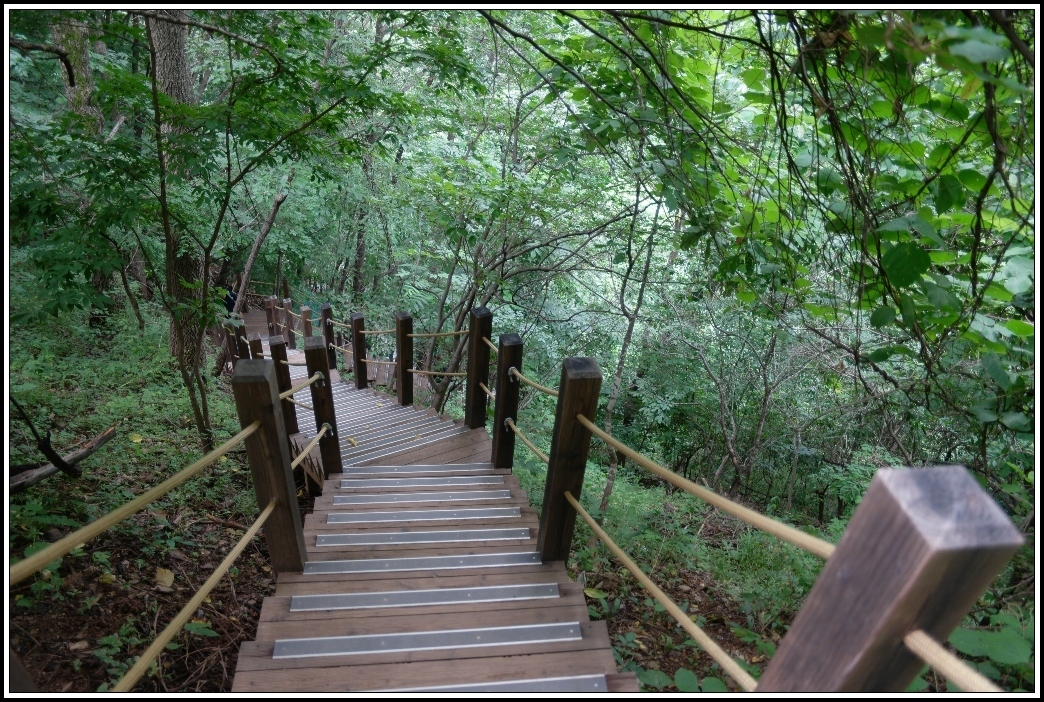 데크로드 따라 가파르게 계곡으로 내려가면,