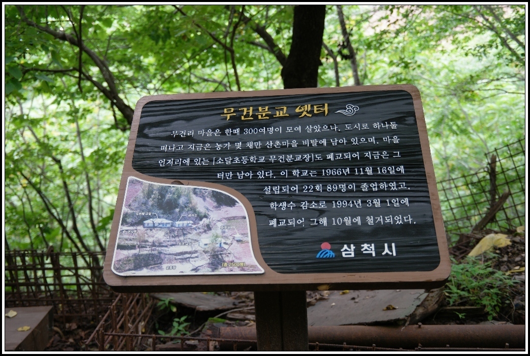이끼폭포로 내려가는 초입에는 "무건분교" 옛터를 만나게 되는데,