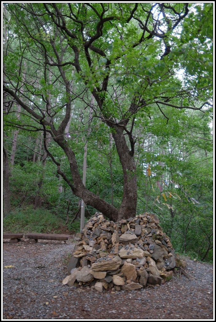 큰 나무아래에는 누군가 쌓기 시작한 돌들이 모여 돌무덤을 이루고 있어,