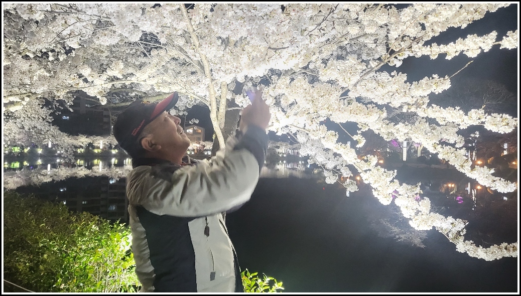 밤 벚꽃이 아름다운 곳은 그리 흔하지 않습니다.