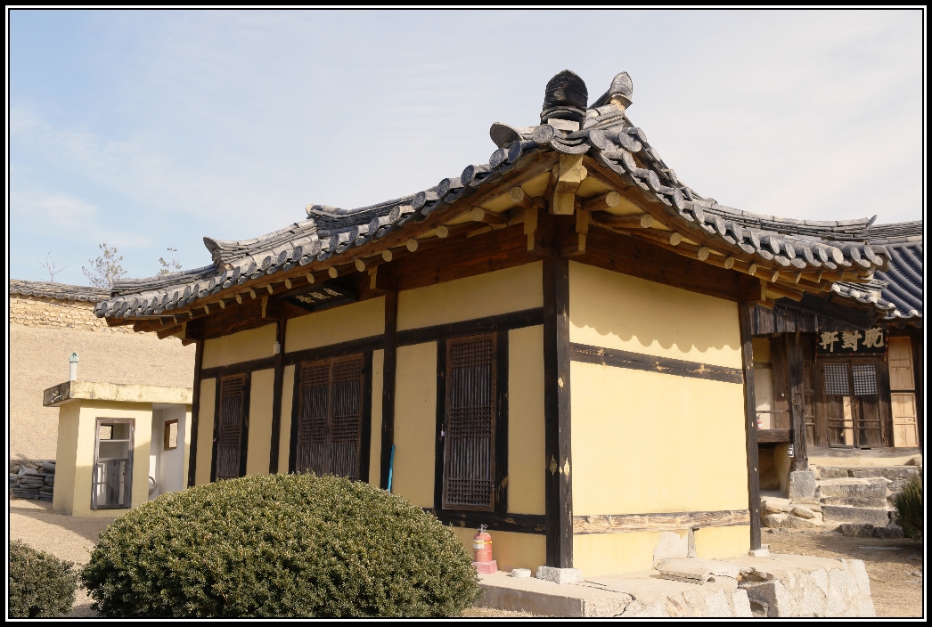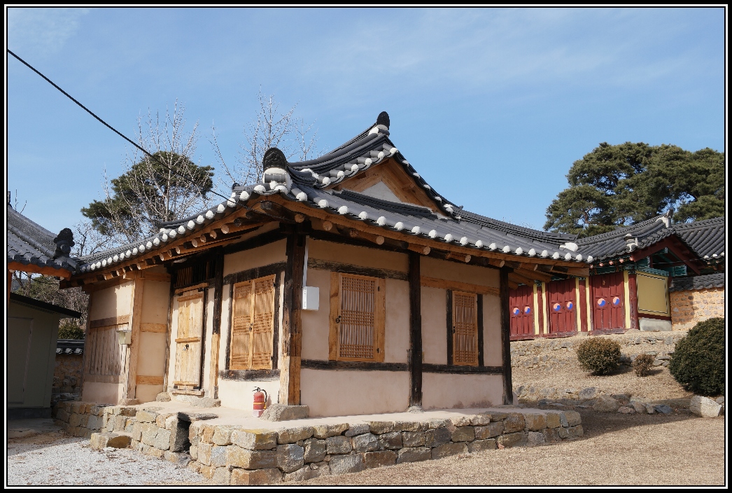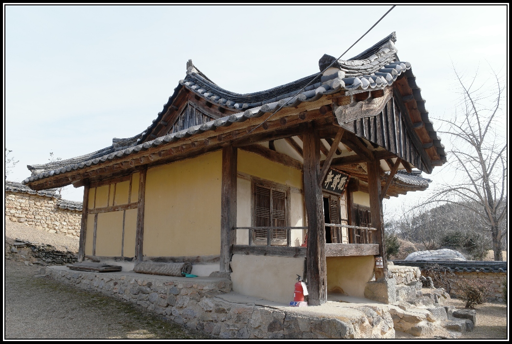 건물의 전체적인 구성은 "ㄱ"자형으로 왼쪽에는 온돌방이 있고,